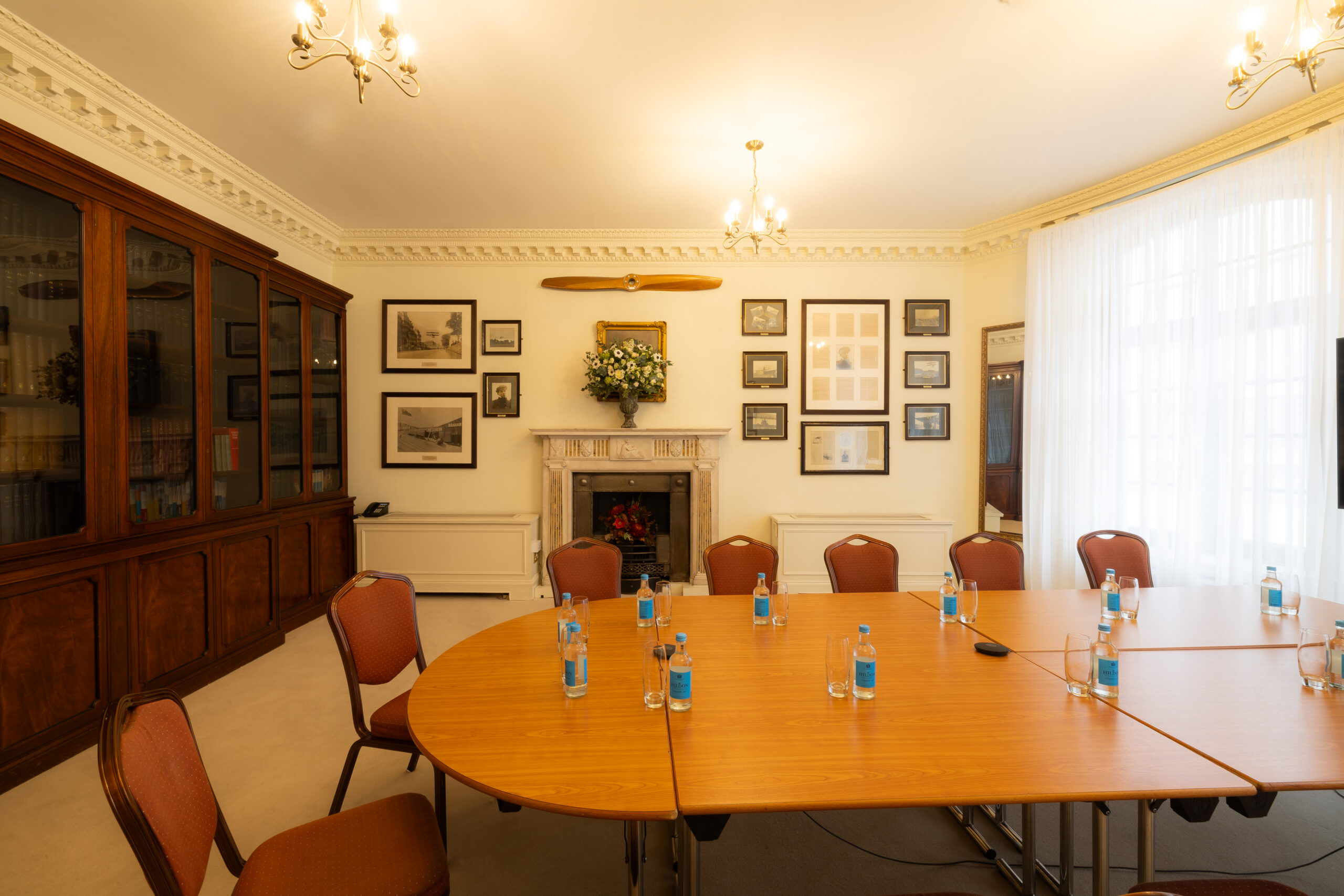 The large windows ensure this spacious Sopwith Room on the second floor has plenty of natural light which makes it well suited as a daytime meeting room in Mayfair, as well as smaller evening events for private dining.